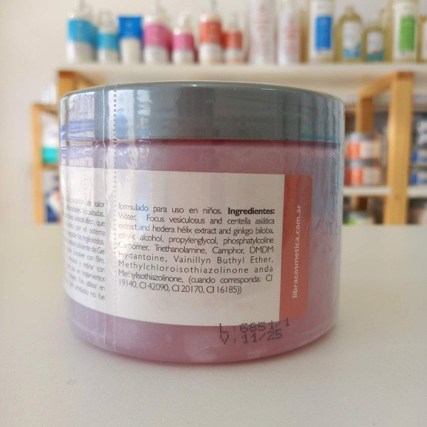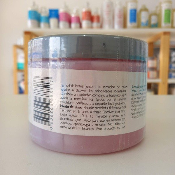 Modo de uso: Uso corporal. Ideal para tratamientos reductores oclusivos, para usar con film o vendas. Se debe retirar a los 15 minutos. Se recomienda ensayar previamente en una pequeña zona del paciente. En caso de resultar muy térmico diluir con gel base. No se recomienda el uso de este producto con lámpara.